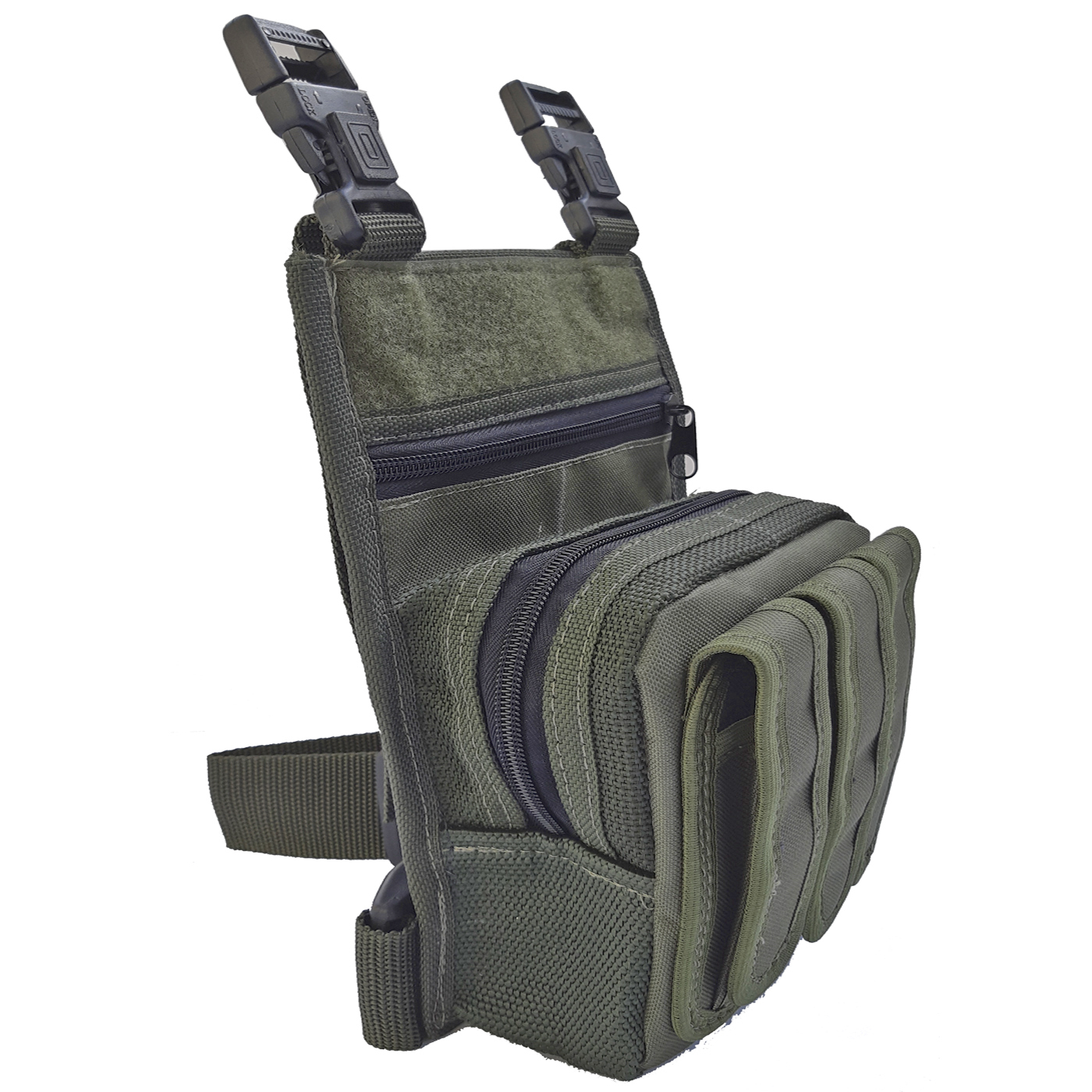 Alças de perna e alças que se prendem a qualquer cinto, com regulagem e fecho com Tic Tac;
